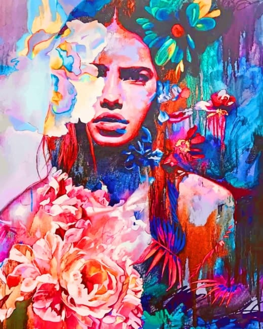 What’s In Abstract Floral Woman paint by numbers kit?
