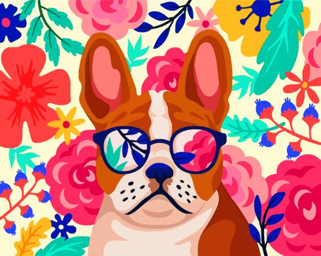 What’s In Dog Wearing Glasses paint by numbers kit?