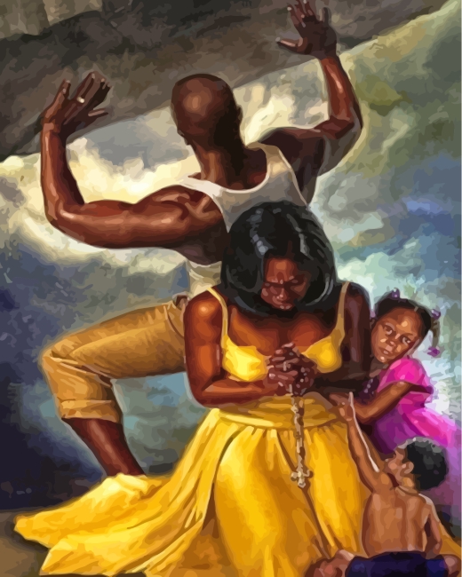 man protecting hsi family paint by numbers