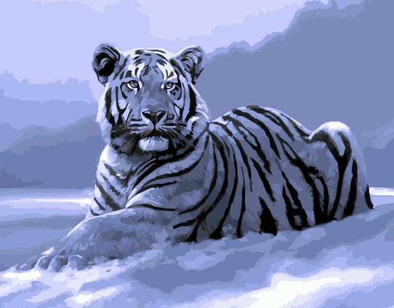STEP 3: Enjoy White Tiger in Snow paint by numbers