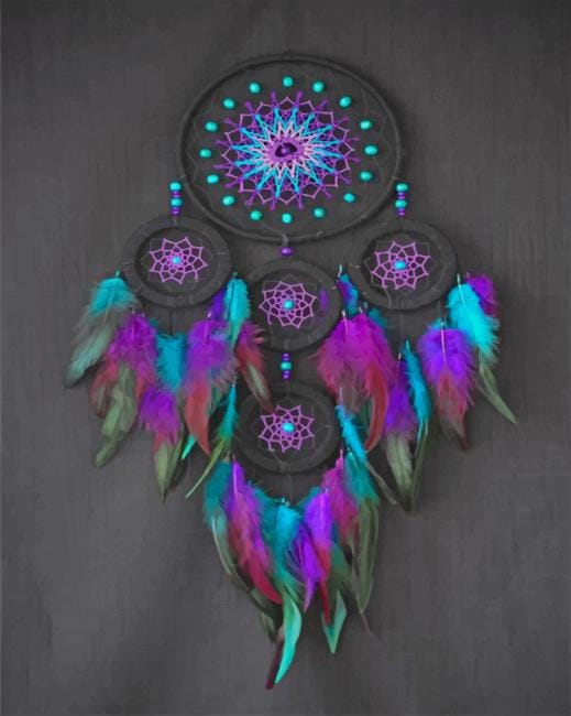 STEP 3: Enjoy Blue And Purple Dream Catcher paint by numbers