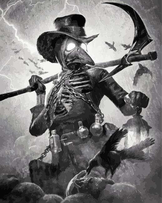 What’s In Black And White Plague Doctor Paint By Numbers kit?