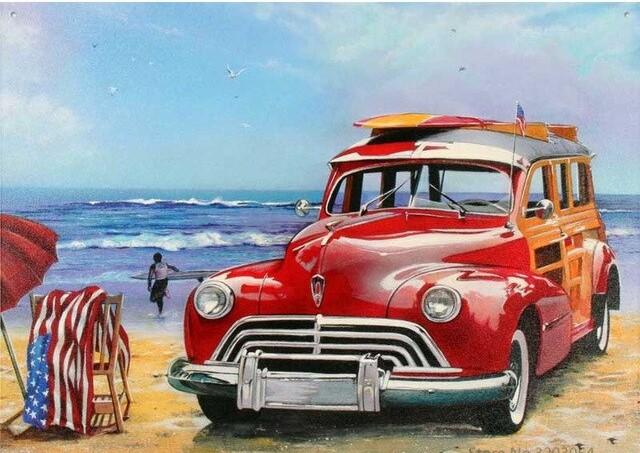 What’s In Classic Car on Beach paint by numbers kit?