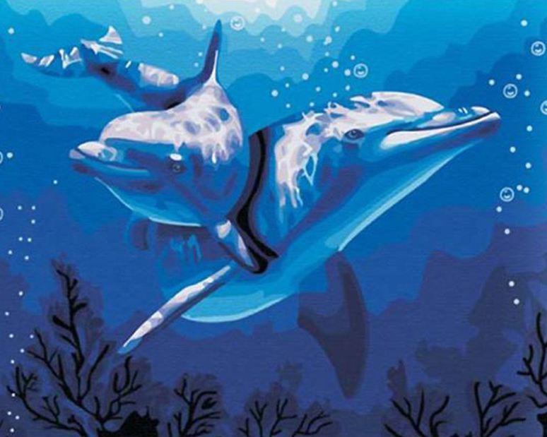 STEP 3: Enjoy Dolphins In The Water paint by numbers