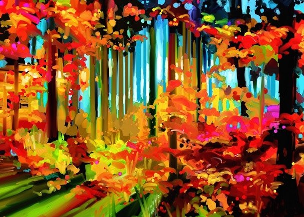 What’s In Abstract Colorful Forest paint by numbers kit?