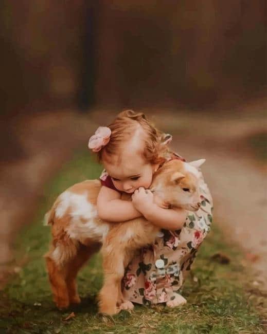 What’s In Girl Hugging A Goat paint by numbers kit?