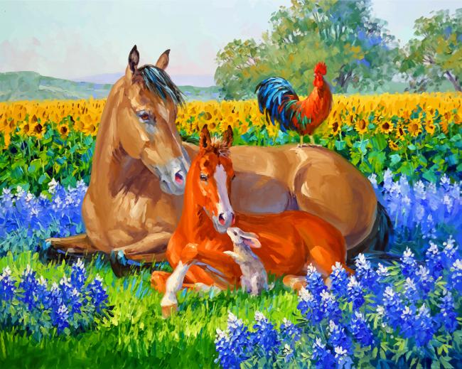 STEP 3: Enjoy Horses And Rooster paint by numbers