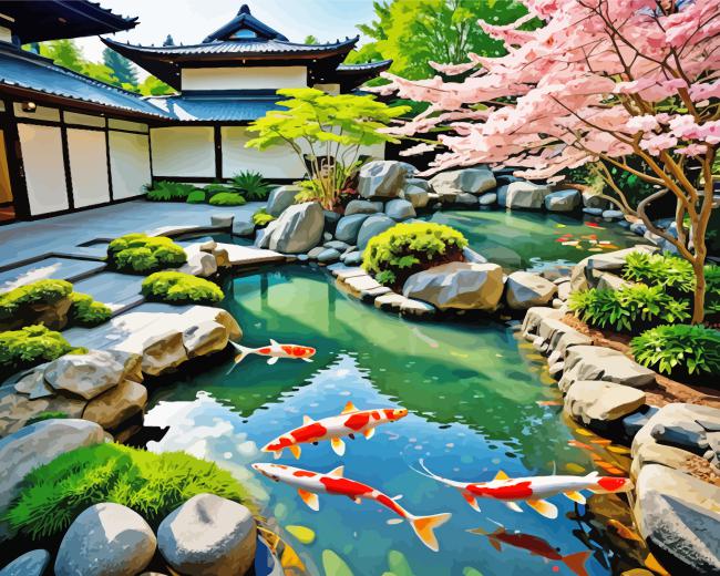 STEP 3: Enjoy Japanese Garden Fishpond Paint By Numbers