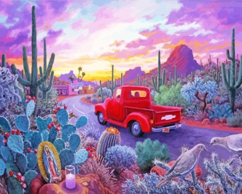STEP 3: Enjoy Red Truck In Succulent Desert Paint By Numbers