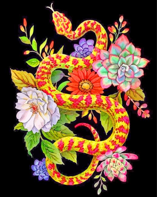 STEP 3: Enjoy Royal Python With Flowers And Plants Paint By Numbers