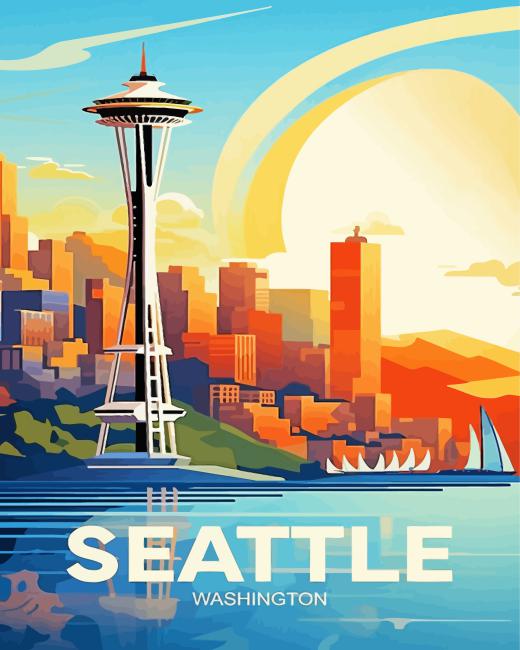 Seattle Washington Poster paint by numbers