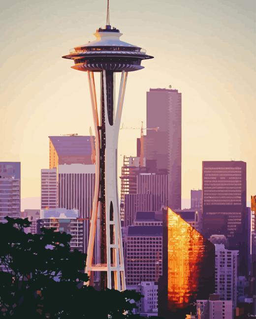 STEP 3: Enjoy Sunrise Space Needle Washington Paint By Numbers
