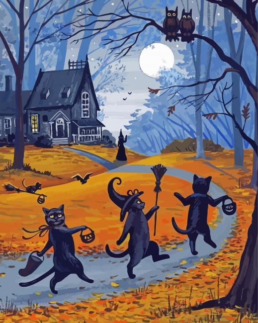 Create your own masterpiece with Vintage Halloween Cats Paint By Numbers Kit. It is the perfect first step for beginners to enjoy the art of painting using our adult paint by number collection. You can easily paint your own wall art, even if you have zero artistic ability. Besides, it can be also framed to be an excellent decoration for your home.
